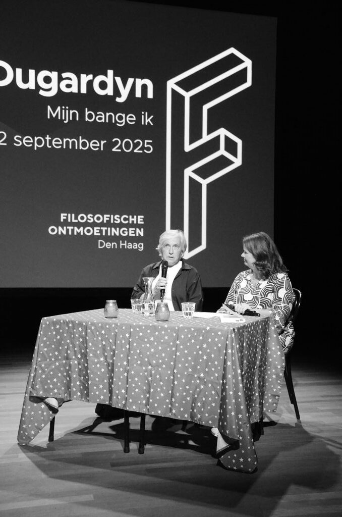 In het gesprek met Esther Didden laat voormalig uitgever en filosoof Regine Dugardyn in Zaal 3 haar bange zelf zien. Aanleiding is de verschijning van het boek ‘Mijn bange ik’ dat dit jaar verscheen. Hoewel het schrijfproces zeven jaar in beslag nam is het een boek dat “eruit moest.” Naast filosoof is Dugardyn patiënt met angstklachten. Hoe kan zij zich als filosoof verhouden tot de talloze cultuurcritici met meningen over psychische nood? Met die vraag had Dugardyn “het haakje al snel gevonden”: het boek moest een eigen verhaal over haar angsten worden.